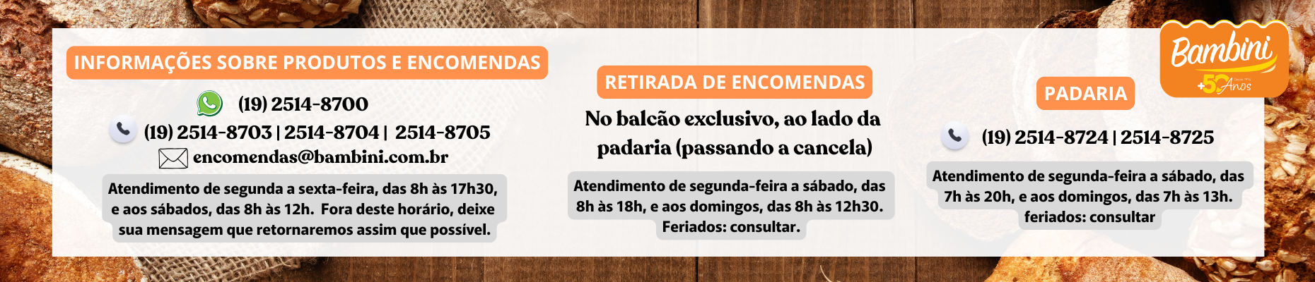 Nascida em 1974, a Bambini é uma das mais tradicionais marcas de pães para Hot-Dog e Hamburger do Estado. Com um Market Share de 90% no mercado de pães para lanches, a marca fornece para mais de 40 cidades, atendendo inclusive o litoral paulista.